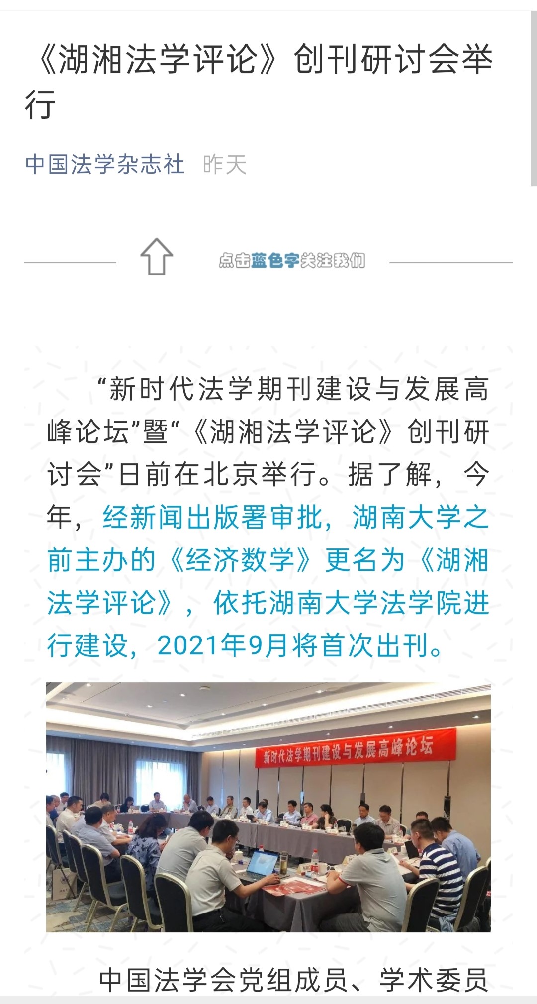 之前主办的《经济数学》更名为《湖湘法学评论》,该刊由教育部主管,逼哩逼哩