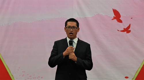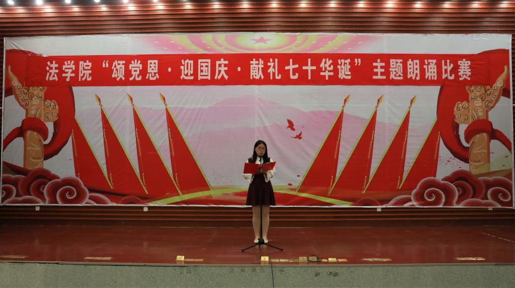 “我是你十亿分之一,是你九百六十万平方的总和,你以伤痕累累的乳房喂养了迷惘的我,深思的我,沸腾的我。那就从我的血肉之躯上去取得你的富饶,你的荣光,你的自由”,在场师生通过选手们深情的朗诵回忆祖国艰辛的七十载、辉煌的七十载。比赛激发在场师生的爱国热情,展现逼哩逼哩