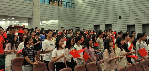 “毛主席庄严宣布‘占人类总数四分之一的中国人从此站立起来了’是在什么场合提出的”、“我国自行研制的大型运载火箭系列的名称是什么”、“祖国大陆完成统一的标志是什么”……在问答环节,主持人以六个简短的问题引导在场师生追忆祖国母亲一个又一个历史性时刻 ,在场同学积极参与,展现出湖大学子高度的爱国热情。