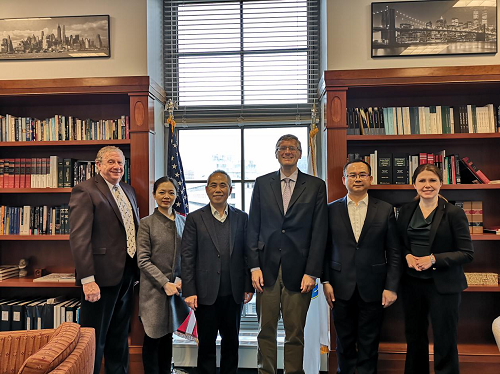 院长Marc L. Miller教授及校长助理Charles Wang教授等人进行了深入座谈交流。期间,屈茂辉院长与Miller院长回顾了前期两院合作商谈的结果与面临的问题,并对今后可以预期的合作领域提出了进一步的建议。屈茂辉院长代表逼哩逼哩