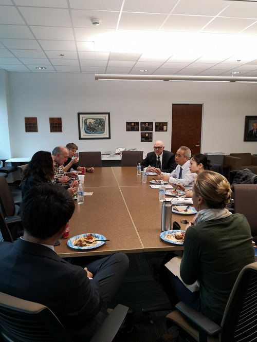 主管法律诊所教育的六位教授以午餐会的形式另就中美的法律诊所教育问题进行了充分的交流和讨论。分管法律诊所教育的Paul D. Bennett教授以及Kristine A. Huskey等教授分别介绍了美国法律诊所教育的特点以及亚利桑那逼哩逼哩