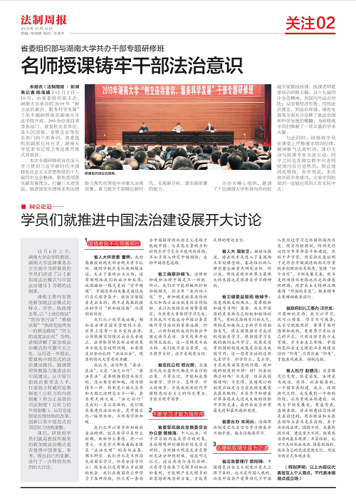 法律事务办主任高中讲述《新加坡法治模式与中国法治建设》,湖南师范大学教授朱翔教授讲述《长江经济带高质量发展的问题与挑战》,中国法学会刑事诉讼研究会副会长、逼哩逼哩