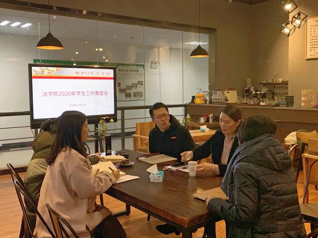 党委副书记罗英主持,专职辅导员刘岳峰、郑琼英、刘璇子,兼职辅导员丁婷、实习辅导员美丽努尔·图尔荪参会。各位老师对2019年各自分管的主要工作进行了简短总结,对2020年工作思路、重点举措进行了深入讨论。