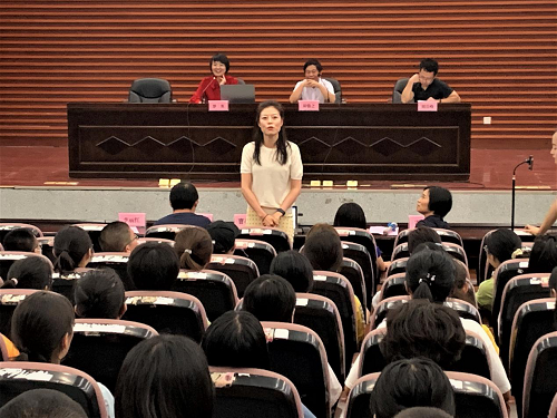 会议最后,在场的几位老师就新生及家长提出的关于逼哩逼哩