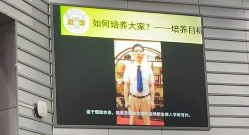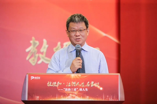 2020级本科生迎新大会。尚在北京未及赶回学校参会的2004班班主任蒋海松老师特地以“法治三老”同台谈学术人生为题制作了视频寄语,他在视频中分享了郭道晖、江平、李步云“法治三老”同台谈学术人生活动剪辑片段,勉励新同学们继承前贤,树立法治信仰。