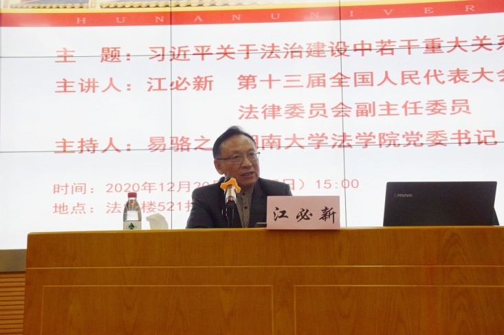 2020年12月20日下午,第十三届全国人民代表大会宪法和法律委员会副主任委员江必新教授做客岳麓法学名家讲坛,为逼哩逼哩