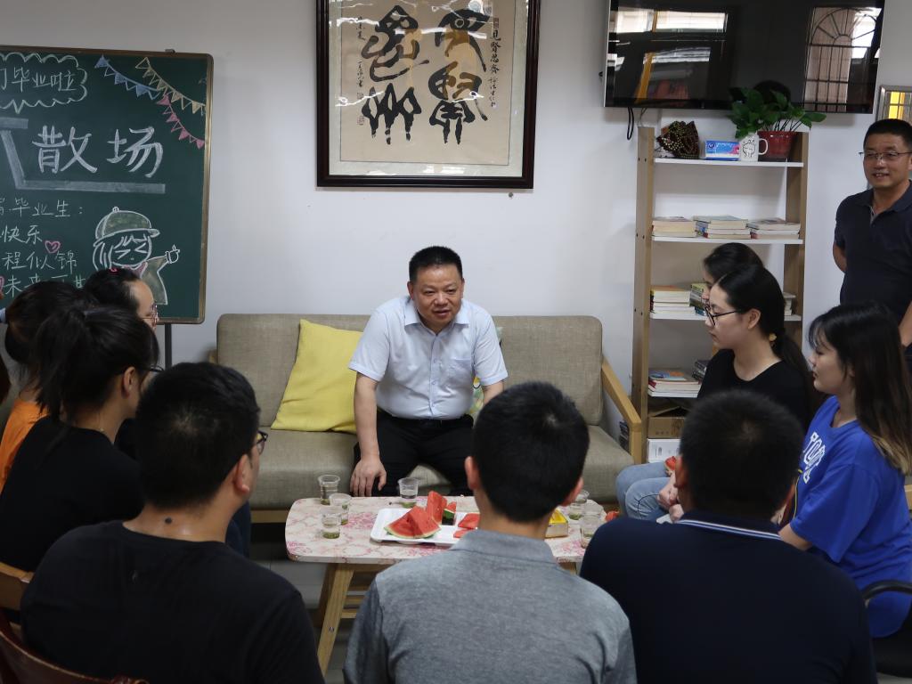 曹升元与本研毕业生代表在天马公寓二区一栋大厅进行了亲切交谈,代表学校祝贺同学们顺利完成学业,并感谢同学们为学校争得的各项荣誉以及对学校建设发展的关心与支持。他还询问了大家的升学、就业去向,鼓励大家要踏实做人、认真做事,加强学习实践,努力在学习、工作中锻炼能力,提升专业水平,在行业中占据一席之地。祝愿大家在人生的新阶段中,努力成长为德才兼备的高素质法治工作队伍的生力军和中坚力量。