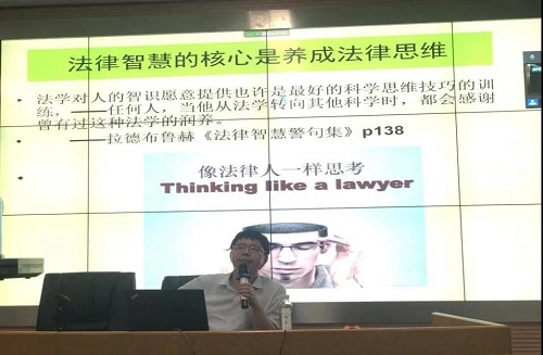 副院长蒋海松副教授为同学们带来了以“法律人的思维”为主题的学术讲座。蒋老师指出,法律智慧的核心是养成法律思维,法律思维方式之一是遵守程序,守护程序正义。他重点解读了苏格拉底之死的哲理启示。程序正义除了维护权利、保障公正等功能以外,还有重要的精神价值,即反对人性的傲慢、自我审视,保持审慎。随后,蒋老师也回顾了边沁、拉德布鲁赫等思想家、法学家对程序正义的相关论述,并辅以“林生斌再婚生女案”“泸州二奶案”等社会热点案件及西游记、金庸武侠等有趣的素材,指出法律思维对于全社会的重要价值。在讲座的最后,蒋老师提出了对同学们的希冀,希望同学们能够带着法律专业的视角对社会热点问题进行分析和研究,积极阅读专业书籍,在学习和实践中理解和掌握法律人的思维方式。同学们在两个多小时的讲座中受益匪浅,蒋海松老师幽默风趣的讲授方式和极具学理性的学术分享获得了营员们的广泛好评。