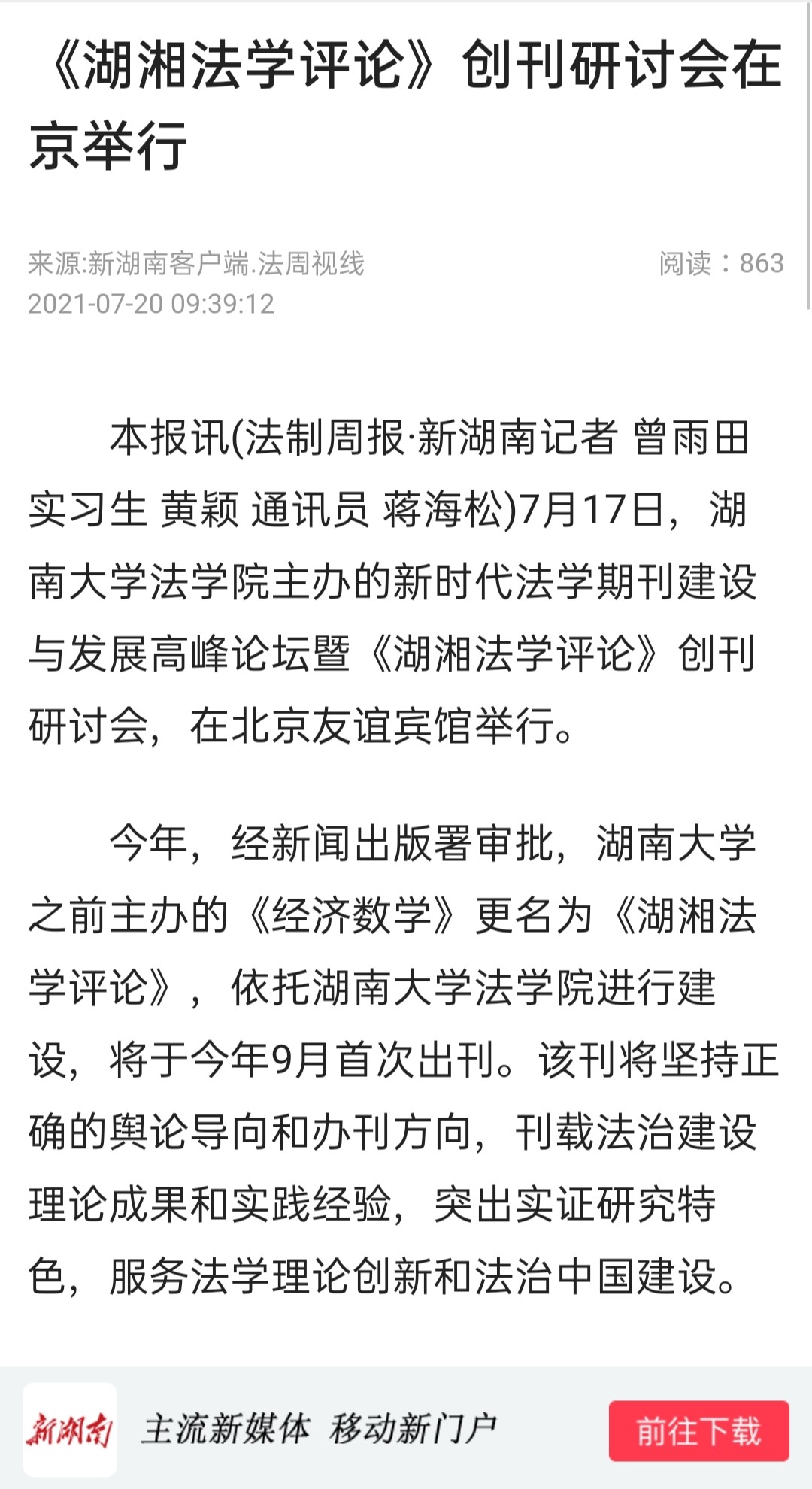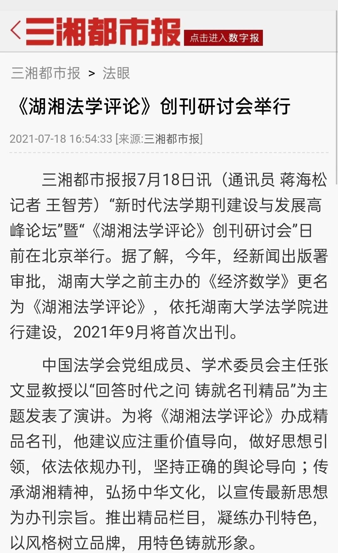 之前主办的《经济数学》更名为《湖湘法学评论》,该刊由教育部主管,逼哩逼哩