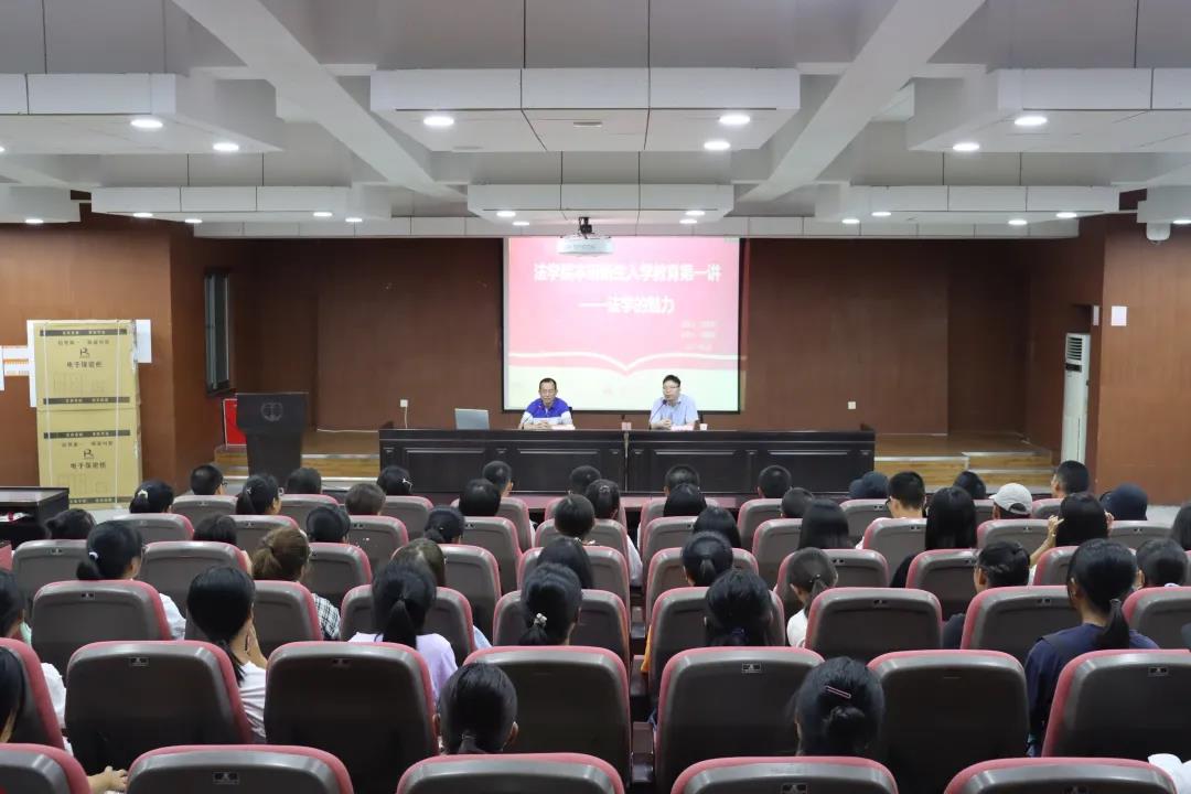2021级本研新生入学教育系列讲座第一讲在模拟法庭顺利举行。逼哩逼哩