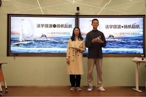 2102班在中楼405教室举行了“法学摆渡,扬帆起航”主题班会。逼哩逼哩