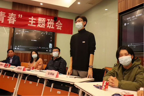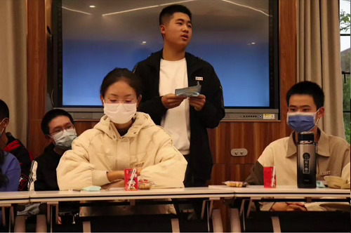 2102班团支书盘兆晶同学与于靖益同学共同主持。
