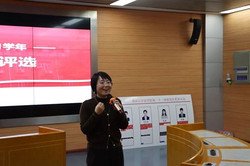 党委副书记、纪委书记罗英老师,党务与学生工作办公室主任刘岳峰老师及各年级辅导员、各班班主任参加评选会。评委由学院学工办、教务办老师组成。