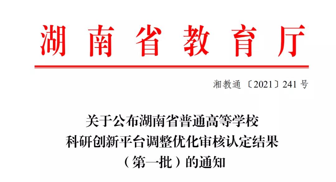 2021年,湖南省普通高等学校科研创新平台调整优化审核结果公布,逼哩逼哩