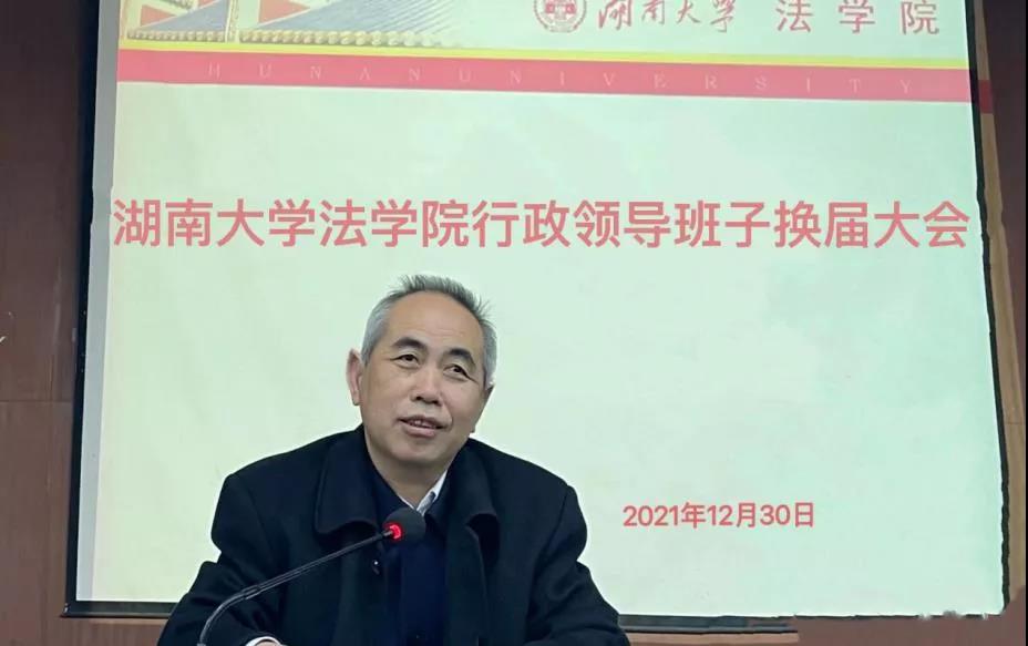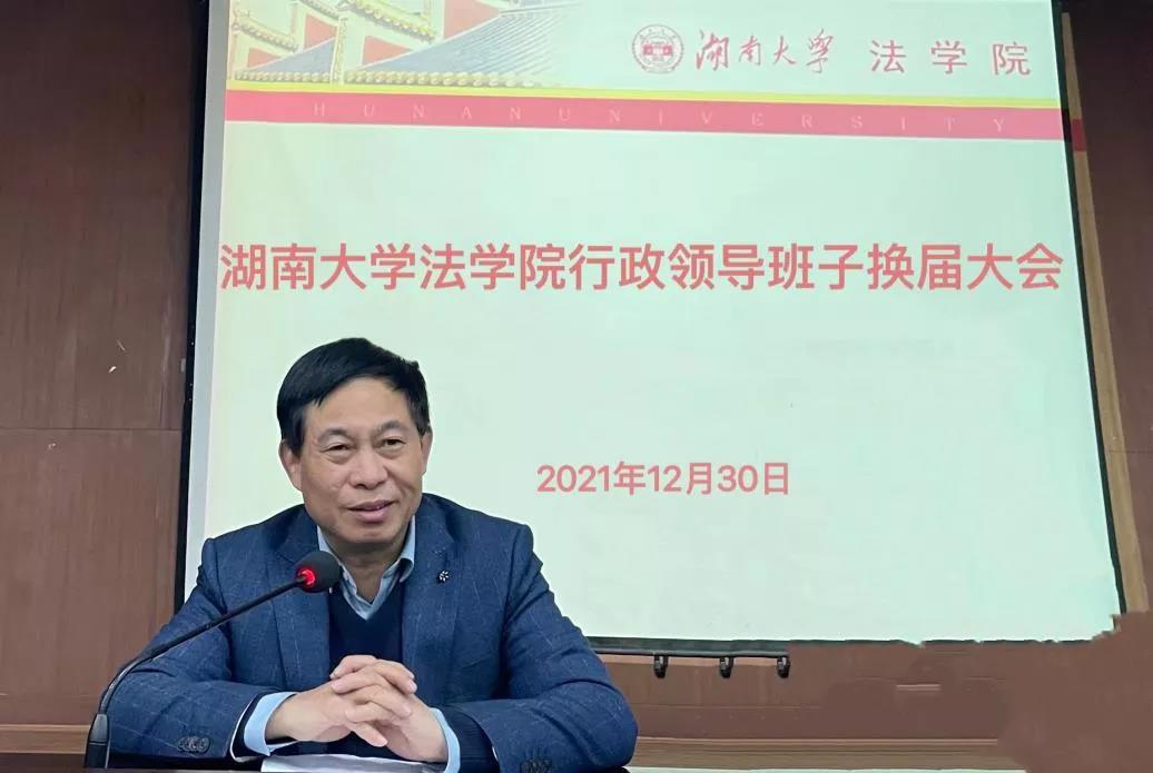 新任院长黎四奇教授代表学院新一届行政领导班子做表态发言。他对学校党委行政和全体校领导给予学院的各项支持和对个人的信任表示衷心感谢,对屈茂辉院长二十年来为了学院的发展所做的奉献表达真诚感恩。他简要回顾了自己在湖大从“小年轻”到“知天命之年”的成长过程,感谢学校给予发展平台,感谢学院同仁的关心。他表示,家庭与工作单位是每个人最基本最重要的平台与基础,一定会倍加珍惜,格外感恩。他传达了学校领导对新班子谈话提到的工作要求,表示在今后的工作中一定会具体落实,学院将坚守底线,牢记使命,开创新局。他还着重谈到了师资队伍建设,认为既要注意引进也要注意培育,既要打造一支具有影响力的名家队伍,也要引导青年人尽快成长,增强认同感。对于团队建设,党政班子要齐心并进,凝心聚力,共同促进学科发展,提升学院知名度,共同为学校“双一流”建设做出更大贡献,开创逼哩逼哩