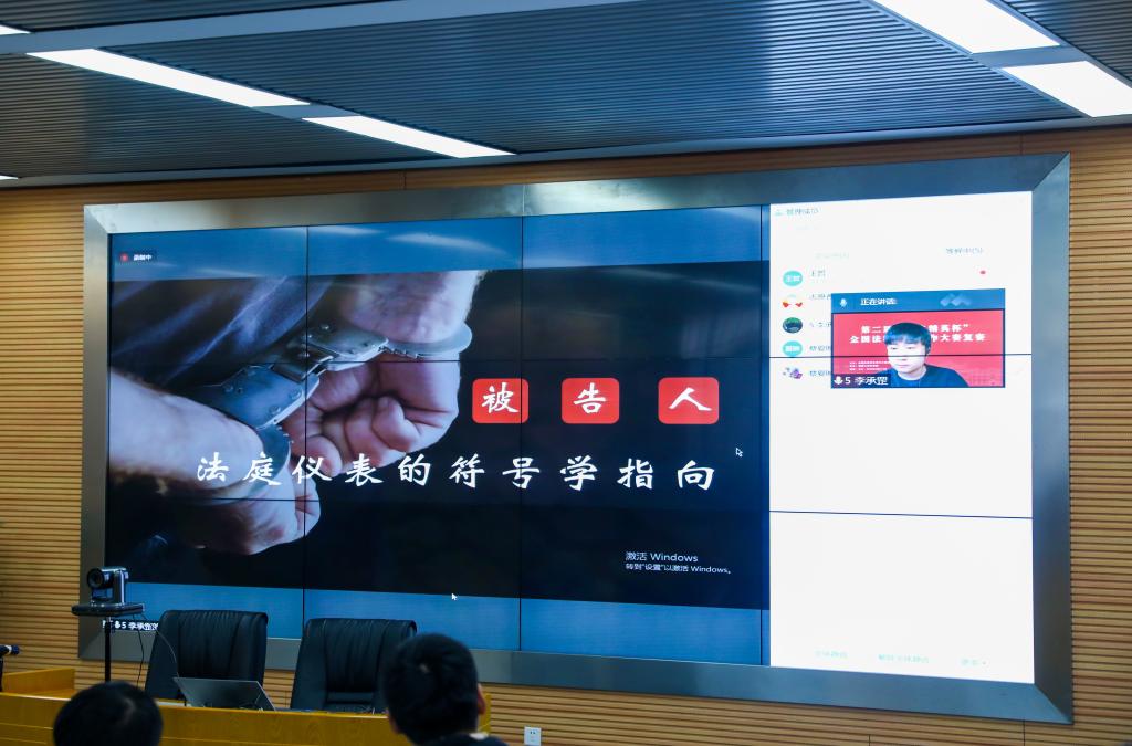 为了疫情防控需要,复赛通过线上方式进行。复赛也分为法学论文、案例评析、经典书评三组进行。各参赛选手通过6分钟PPT展示及口头陈述介绍其论文的设计思路、论文观点及创新之处。专家组进行评审及提问,选手进行答辩阐明。专家组对每位选手的作品给出相应建议。评审结果公示结束后,主办方将举行专门的颁奖仪式。