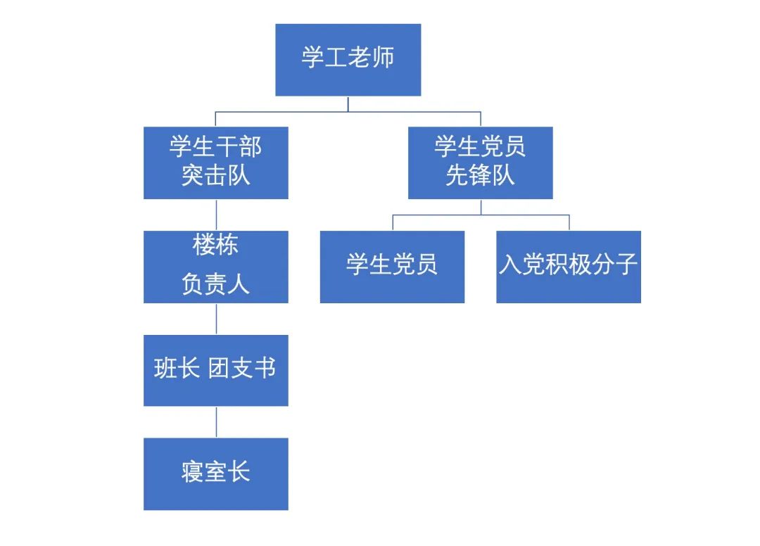 学生干部突击队和学生党员先锋队。一方面,由楼栋负责人、班长团支书、寝室长组成学生干部突击队,实现管控期间信息的上传下达;另一方面,充分调动储备的学生党员群体,建立以学生党员和入党积极分子为主体的逼哩逼哩