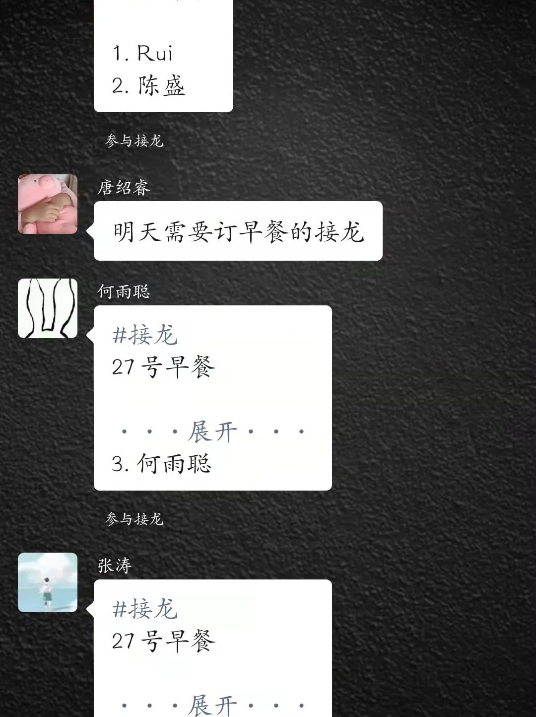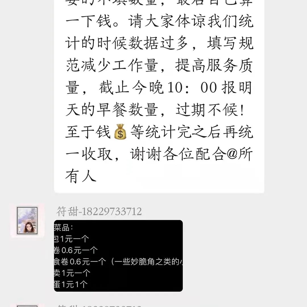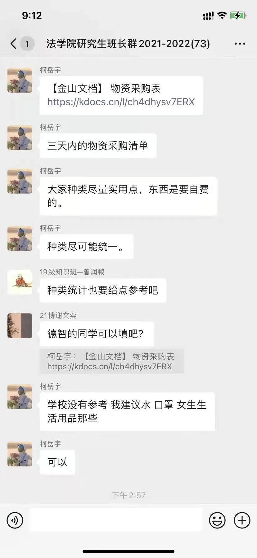 为积极响应学校疫情防控政策,老师们第一时间向各班班长传达疫情防控最新消息,由各班班长负责疫情人员与物资的调动。