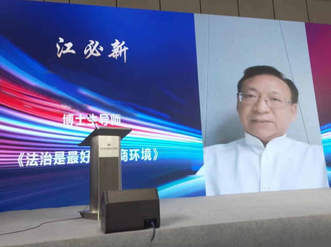 教授、博士生导师、中国法学会副会长、原最高人民法院副院长江必新教授应邀做了主旨演讲《法治是最好的营商环境》,逼哩逼哩