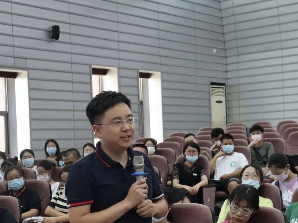 课程设计的内容及特点,特别是对于大一第一学期的课程做了重点介绍。最后,蒋老师向新生提出了几点学习建议——利用军训期间稍作学习预习、看基本法条以及网络热点讨论、重视经典人文阅读、注意学制要求、保研要求等基本规范。