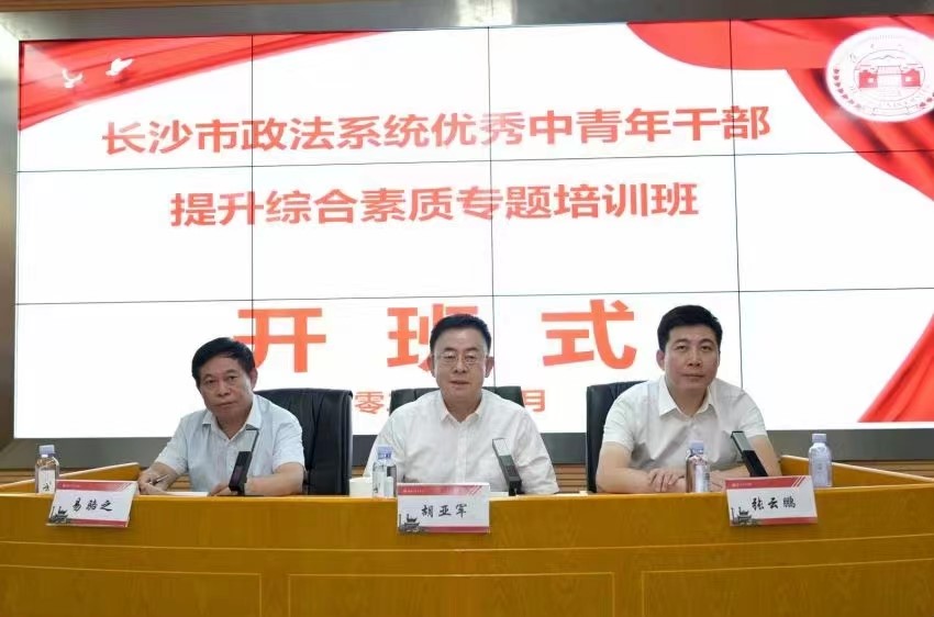 党委书记易骆之致欢迎辞,长沙市委政法委政治部主任张云鹏主持开班仪式。本次培训班将对全市政法系统的48名学员进行为期14天的专题培训。
