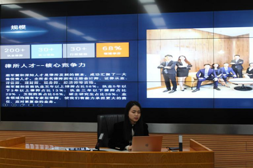 521报告厅还开展了律所宣讲活动。湖南湘军麓和律师事务所从律所介绍、人才培养、未来发展等方面,为在场同学提供了详细的指导。同学们也踊跃提问咨询。