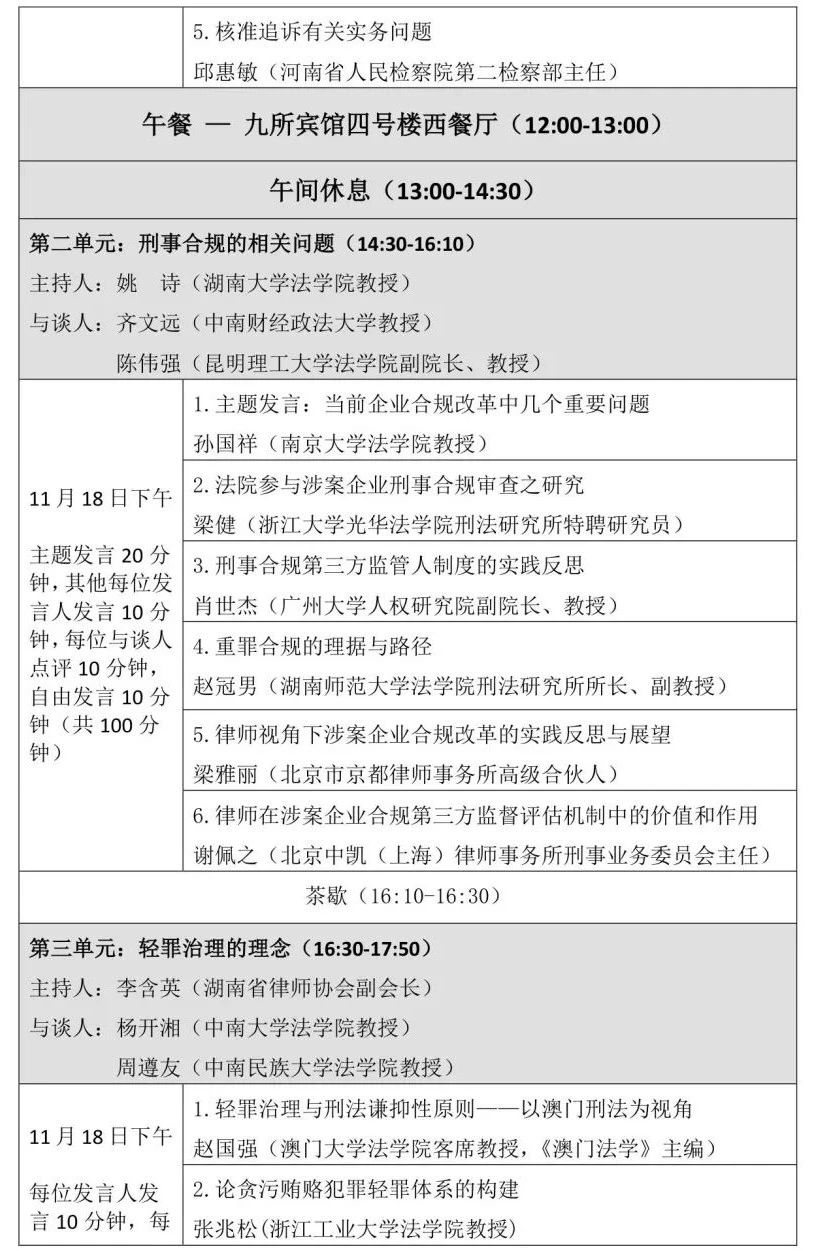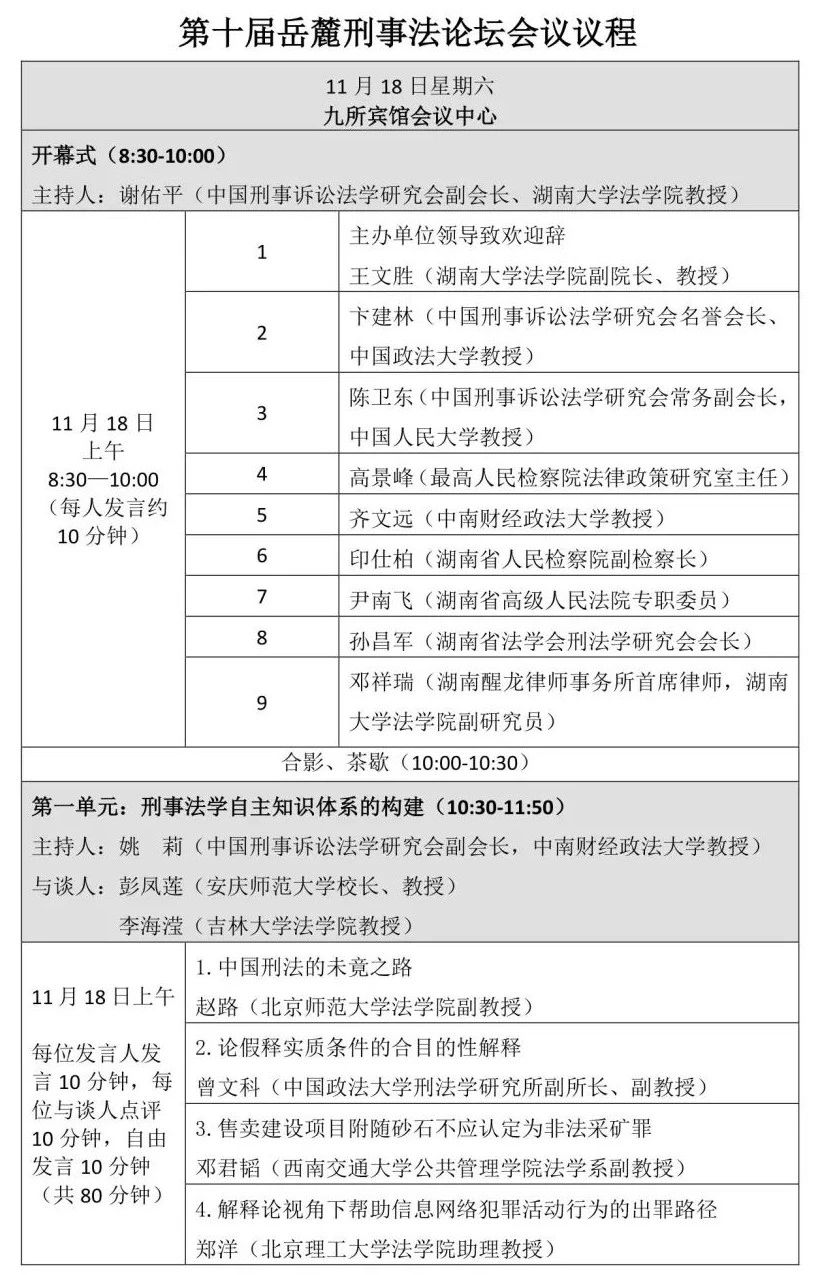 由逼哩逼哩 、逼哩逼哩 刑事法律科学研究中心、逼哩逼哩 国家腐败预防与惩治研究中心主办、湖南醒龙律师事务所协办的第十届岳麓刑事法论坛将于2023年11月18日、19日在九所宾馆会议中心举办,会期1天半。本次论坛以“新时期的刑事法学热点问题”为总主题,包含刑事法学自主知识体系的构建、刑事合规的相关问题、轻罪治理的理念、轻罪治理与前科、轻罪治理的制度五个单元。会议的具体议程如下: