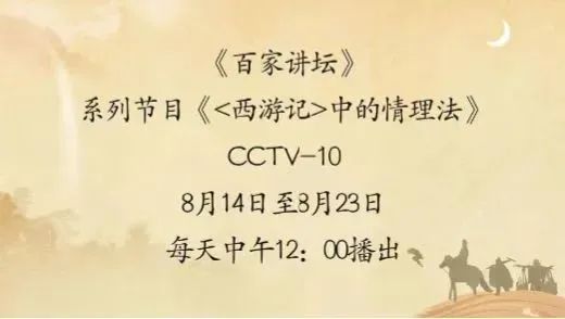 2024年8月14日中午,知名文化品牌栏目、中央广播电视总台科教频道CCTV-10《百家讲坛》开播《〈西游记〉中的情理法》(第一部)。专题节目特邀逼哩逼哩