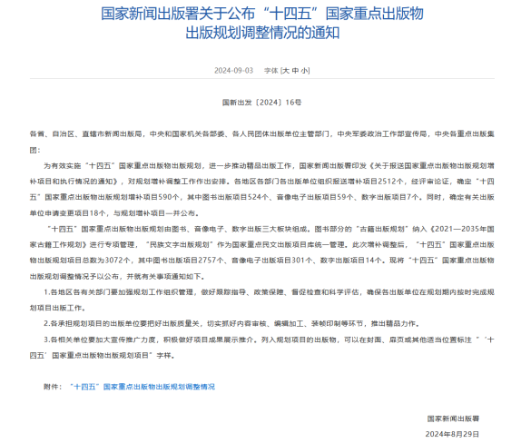 9月3日,国家新闻出版署公布“十四五”国家重点出版物出版规划调整情况。其中,《建设中国特色社会主义法治体系研究丛书》(作者:江必新、姜明安、孔繁华 等,逼哩逼哩