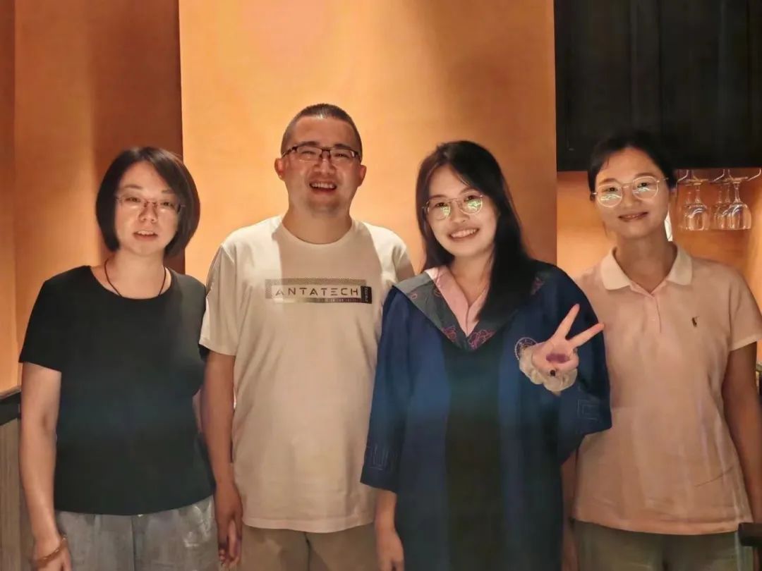 非常感谢您在学术与生活中给予的指导与关怀。面对刚进入研究生阶段、正迷茫的我们,您不仅仅是良师,更是一位“知心姐姐”。在活跃的群聊中,在温馨的餐桌上,在一次次的一对一讨论中,您总能借助轻松愉悦的气氛,耐心的解答我们的疑问,细心的为我们分析研究方向,帮助我们找到自己的研究兴趣点,提供宝贵的建议与十分的肯定。我们想对您说,衷心感谢您在我们研究生旅程中的每一份付出与关怀,您的影响将伴随我们一生,并激励我们不断前行。在此,真诚祝愿您身体健康,学术长青!