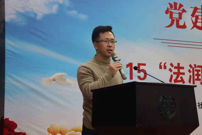党务与学生工作办公室主任刘岳峰老师致辞,指出本次普法活动旨在将法律知识普及给居民并营造一个和谐法治社会.刘老师还简单介绍了后续即将开展的“岳麓法青”法律志愿服务队项目,通过志愿活动向居民提供持续的法律援助。同时向居民们发出倡议:“既要做法律的明白人,也要做邻里的传声筒,还要做社区的监督员”。居委会夏运枚主任结合社区实际,分享了在消费者权益保护方面的经验和方法,提出要将普法教育同社区建设有机结合,扎根基层、贴近群众。