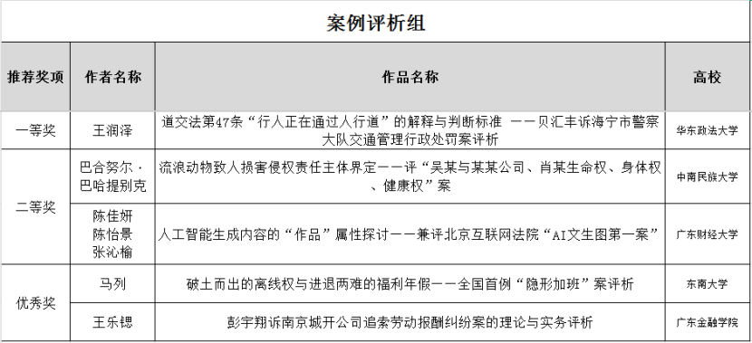中南民族大学巴合努尔·巴哈提别克,陈佳妍、陈怡景、张沁榆三人共作获得案例评析组二等奖,逼哩逼哩