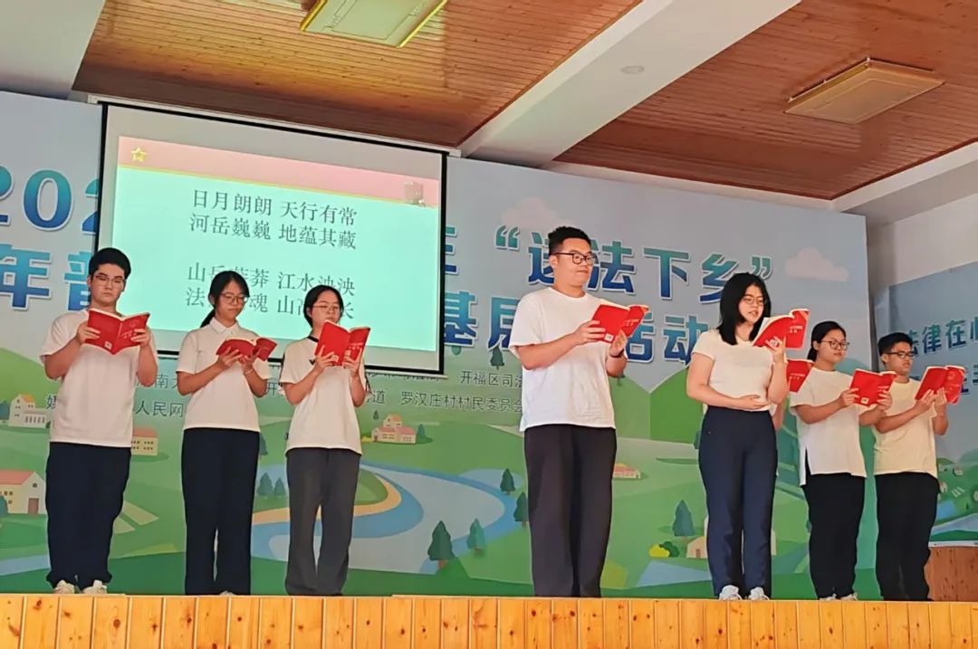 志愿者激情澎湃地朗诵了蒋海松创作的《青春法学人歌铭》中拉开帷幕,同学们用慷慨激昂的声音诠释了法律的崇高意义和普法工作的坚定决心,让在场的每一个人深切感受到法律在济世益民、定国安邦中的重要作用,现场气氛瞬间被点燃。