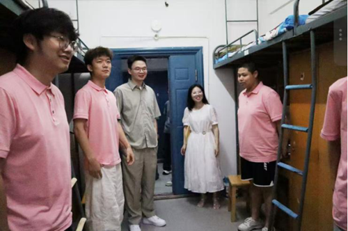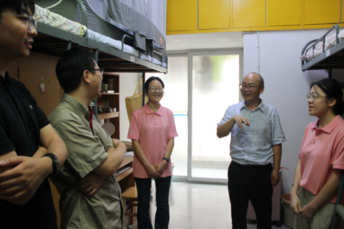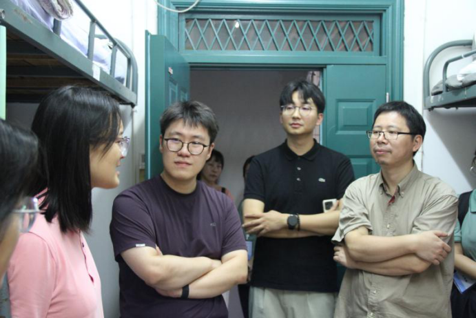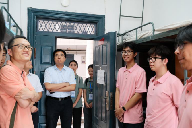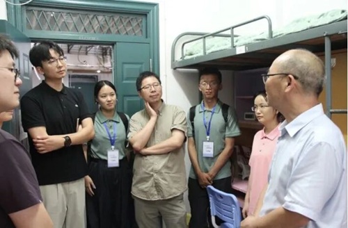秋风送爽,丹桂飘香。为深入了解2025级新生的入学适应情况,引导新生尽快融入大学校园生活,营造安全、和谐、温馨的寝室氛围,9月10日傍晚,党委书记李劲松、院党委副书记兼纪委书记胡琼、副院长蒋海松、副院长王文胜、院长助理展鹏贺,2025级班主任林慰曾、张晓勇、袁崇霖、郑德群、林婧,以及2025级本科辅导员张丹深入新生寝室,开展查寝慰问工作。