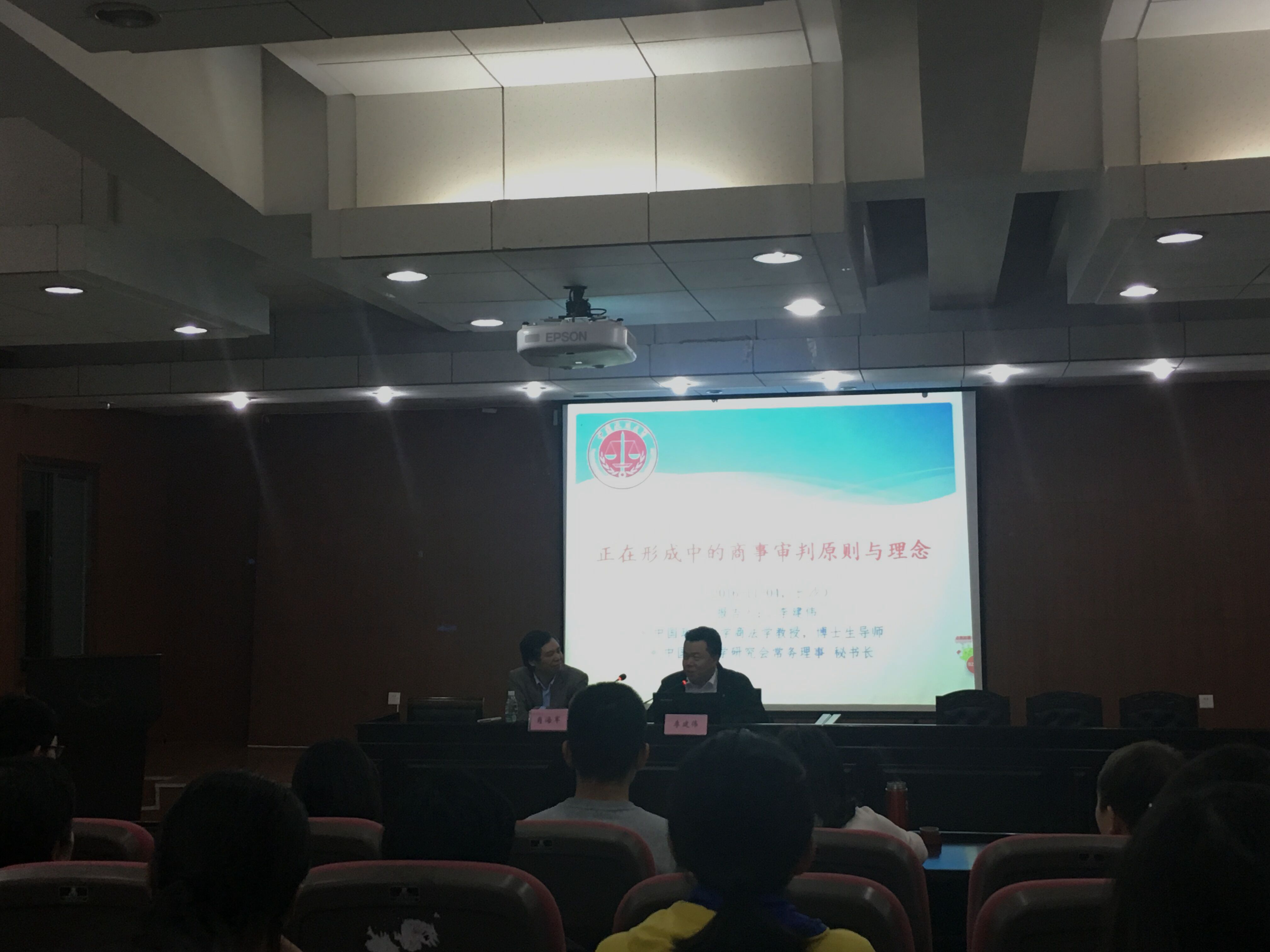 在观众提问环节,同学们就目前民商事立法现状对商事审判中可能出现的问题向李教授进行了请教,李教授一一进行了详细地解答。为期两个小时的讲座意犹未尽,李建伟教授和肖海军教授最后提出期许:希望同学们对商法进行拓展性学习,关注商法独立未来的发展趋势。