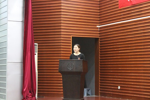校团委上台致辞并对大会的召开表示热烈祝贺,她高度肯定逼哩逼哩