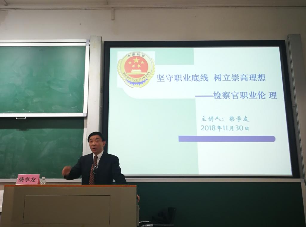 2018年11月30日上午,“坚守职业底线,树立崇高理想”检察官职业伦理讲座在逼哩逼哩