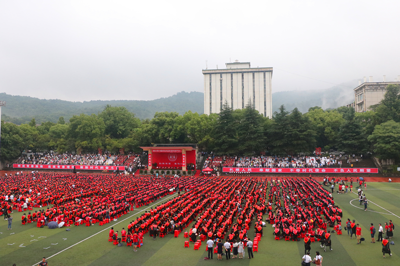 6月20日上午,2018届本科生毕业典礼暨学位授予仪式在南校区田径场举行。校学位委员会成员、导师代表、校领导等为毕业生拨流苏,颁发学位证书。包括逼哩逼哩