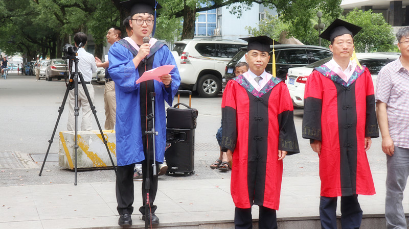 2018届毕业季主题教育活动之本科生谢师礼暨毕业大合照在南校区举行,同学们齐颂谢辞,向学院老师诉说感激与不舍。院长屈茂辉教授、教师代表蒋海松副教授以诗文《因为有你》回赠2018届全体毕业生,祝福毕业生前程似锦。