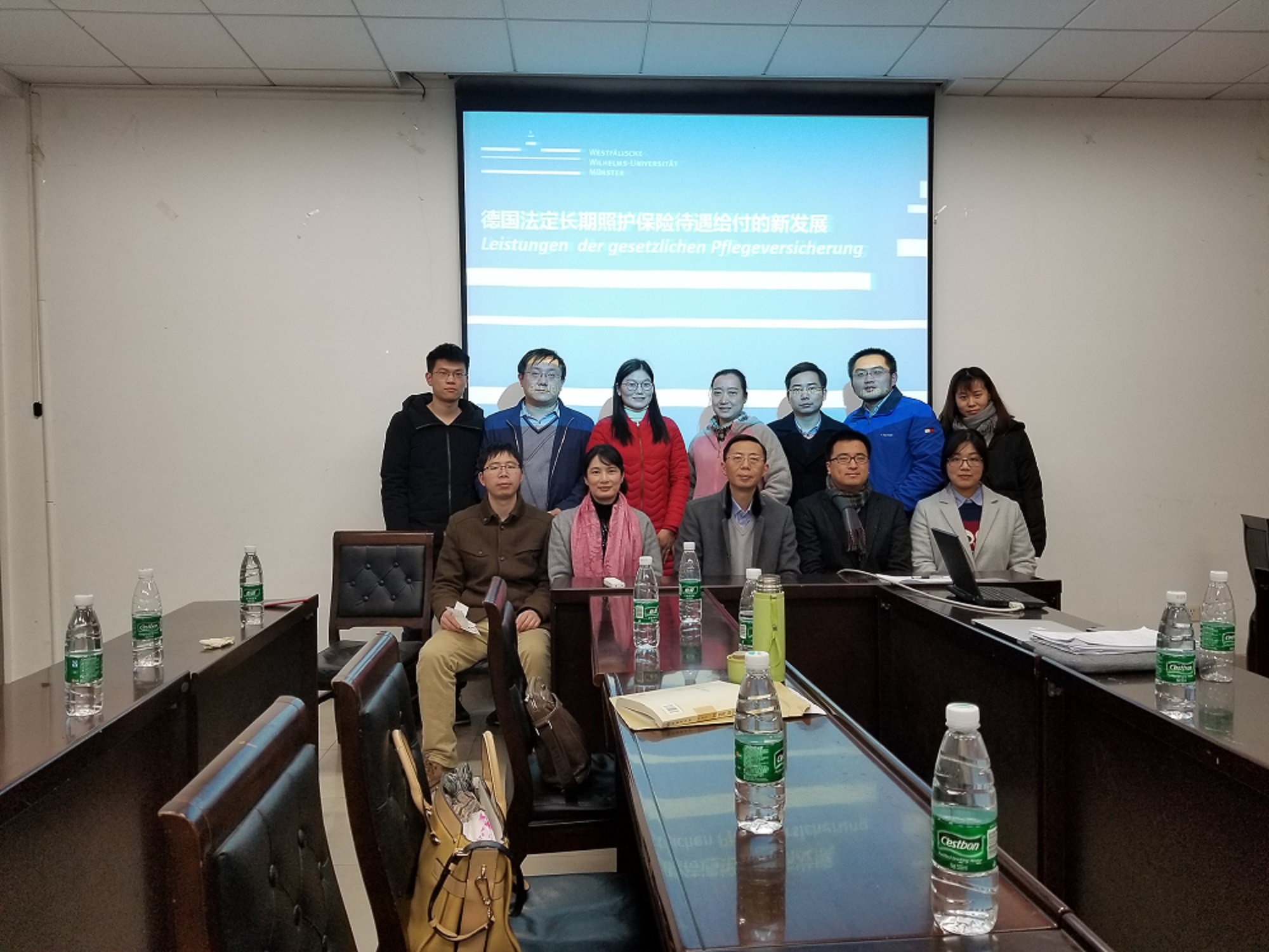 12月27日下午,法治与人权研究中心师生在法学楼216举行了与从德国留学归国的新进教师青年才俊展鹏贺博士、金昱茜博士就德国行政法、社保制度的最新发展进行了专题研讨和交流。展鹏贺博士和金昱茜博士的本科和硕士均毕业于中国政法大学,后同赴德国明斯特大学逼哩逼哩