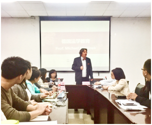 喻玲副教授主持,Michael教授用英语声情并茂地进行了演讲。