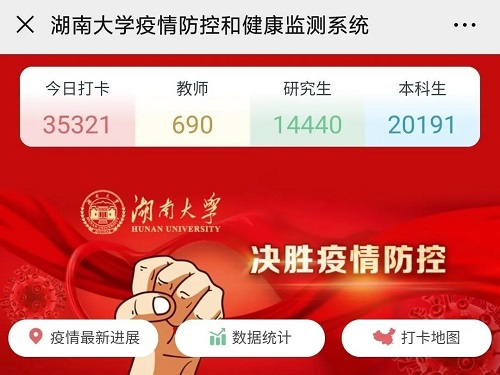 到校时凭校园卡和“湖南省居民电子健康码”绿码或所在地绿码(离鄂同学返校时还需持有前7天内核酸检测阴性证明,或持有既往血清特异性IgG抗体检测阳性证明,或出示包含以上检测结果信息之一的健康通行码“绿码”)报到。