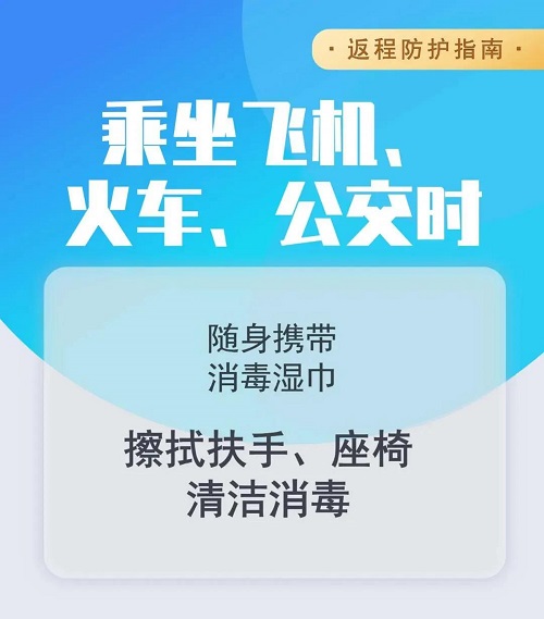 有条件的建议乘坐私家车返校,尽量避免搭乘公共交通工具。乘坐私家车返校的,注意车内通风。如无必要,尽量不在服务区停留。车上有其他人时,建议戴好口罩。乘坐火车、飞机等公共交通工具时,需全程佩戴口罩,注意与他人保持1米以上的距离,避免面对面交流。注意交通安全,妥善保存旅行票据信息,记录乘车时间和乘车地点,以配合可能的相关密切接触者调查及作为学校审核依据。