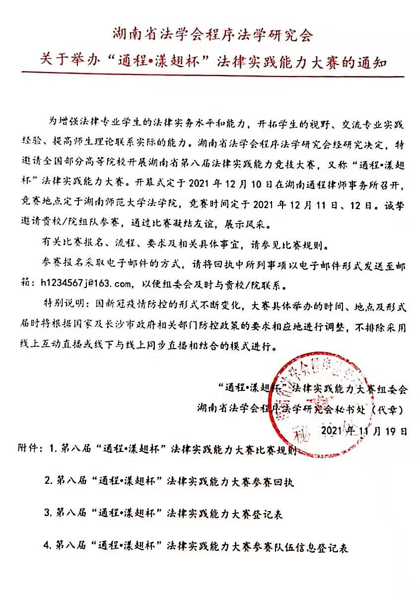参加2021年度“通程•漾翅杯”法律实践能力大赛,现面向全院学生选拔赛队队员,具体事宜通知如下。
