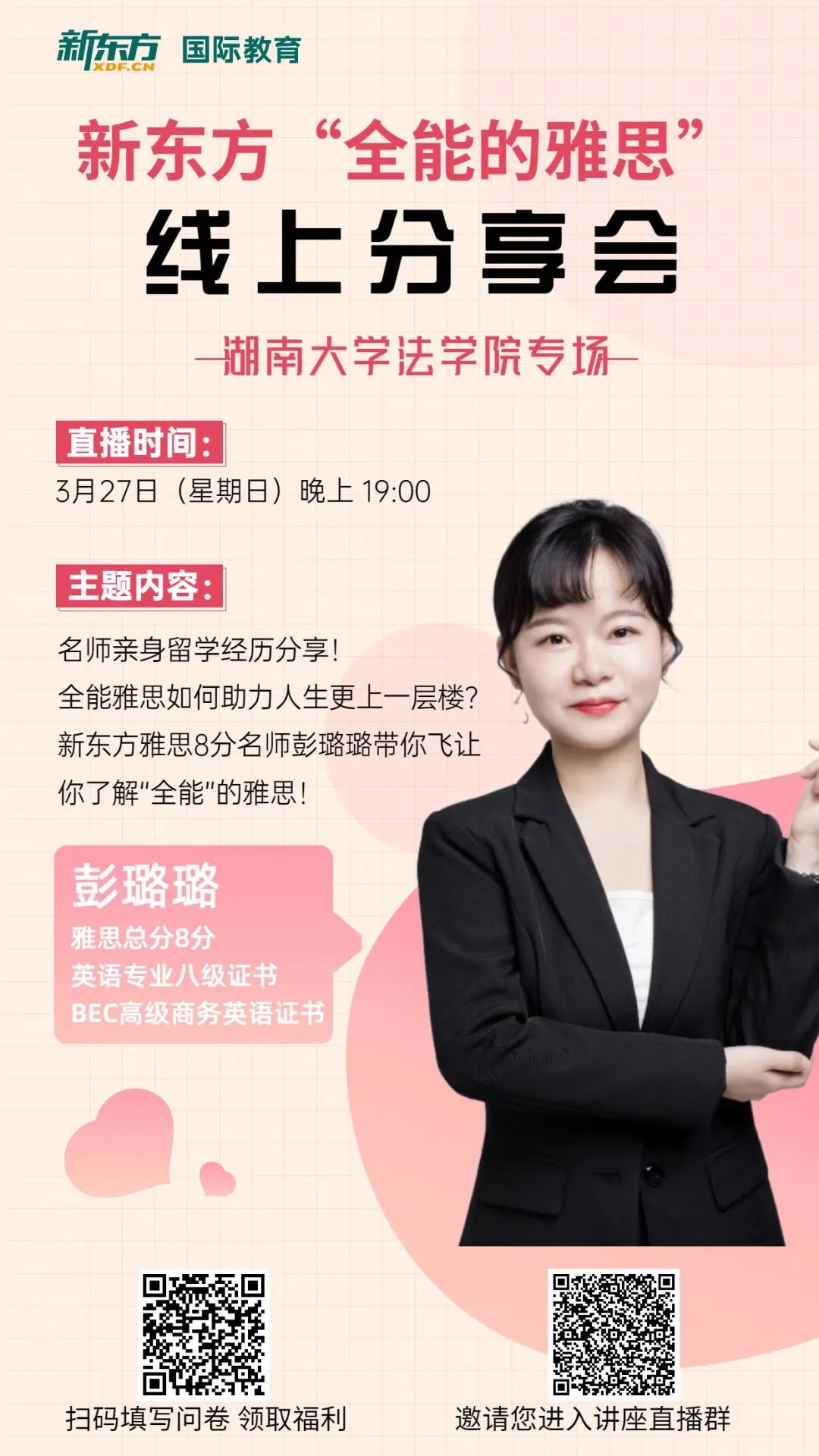 将联合长沙新东方国际教育事业部举行【新东方“全能的雅思”线上分享会】~