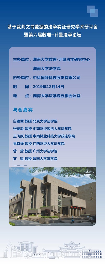 数理-计量法学研究中心将于2019年12月14日举行“基于裁判文书数据的法学实证研究”学术研讨会。