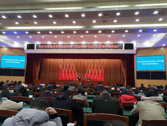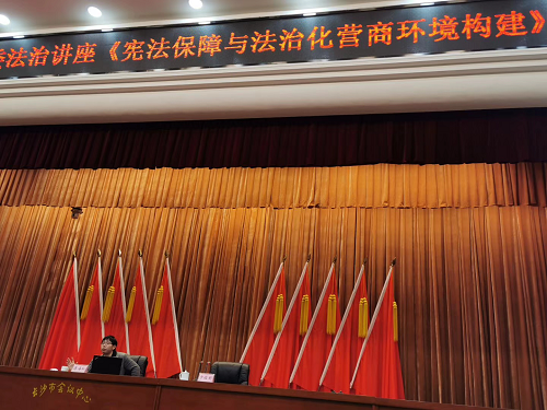 2019年12月11日,长沙市发展和改革委员会在长沙市会议中心三楼举办《宪法保障和法治化营商环境构建》专题法治讲座。会议特邀逼哩逼哩