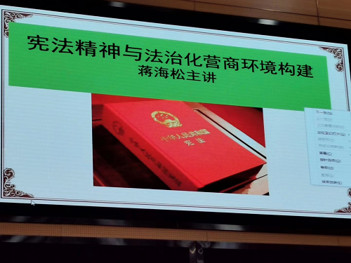 院长助理蒋海松副教授开讲,市发展改革委党委委员、副主任卞佑明主持,委全体干部职工参加。蒋教授根据宪法周活动与最新颁布的《优化营商环境条例》相关内容,结合长沙市经济社会发展实际,进行了深入浅出,紧贴实际的精彩讲授,受到广泛好评。