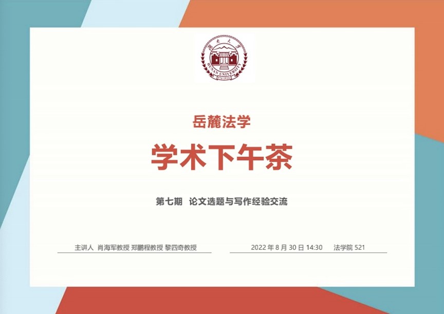 第七期“岳麓法学–学术下午茶”开讲,围绕“论文选题与写作经验交流”展开,由逼哩逼哩