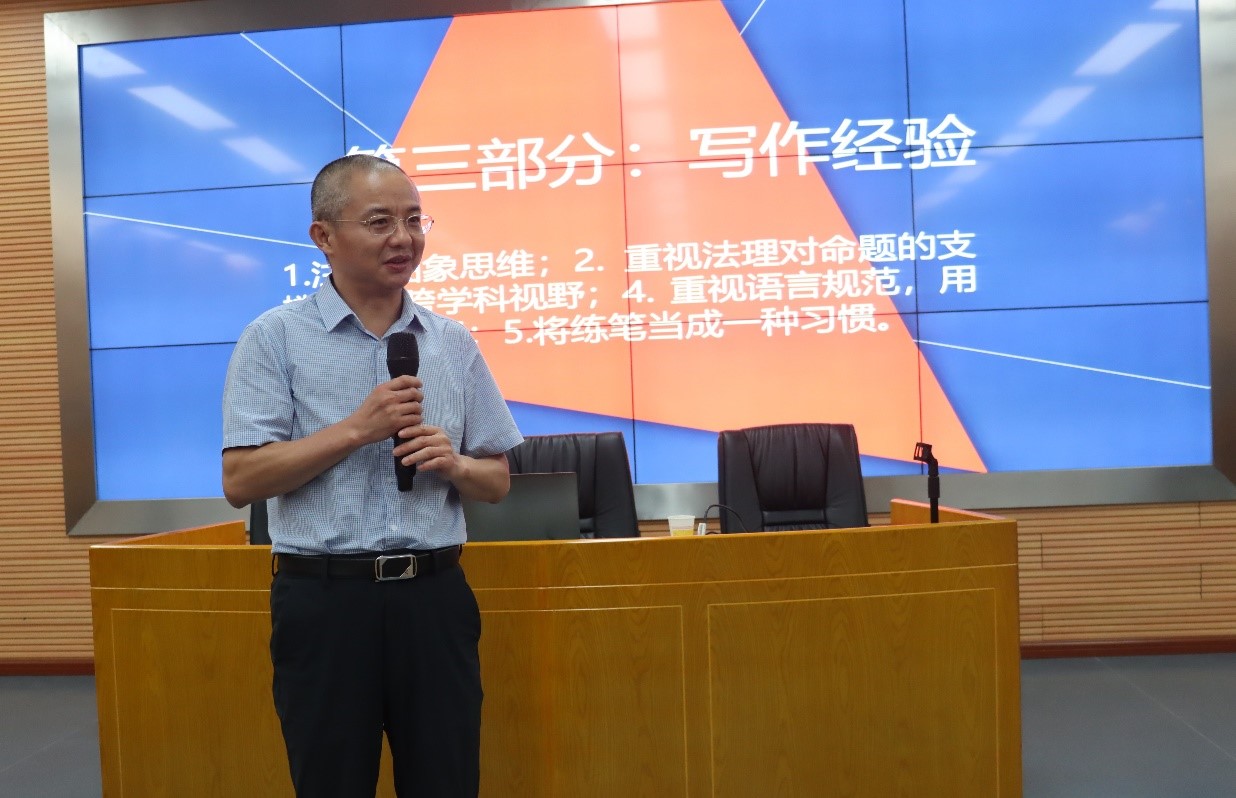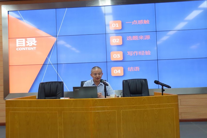 黎四奇教授从教师的角色定位谈起,并分享了教学与科研如何调适;以自己的藏书为例引出法学不是孤立的学科,与政治经济等学科密切相关;对于论文的写作,首先要关注的是选题,指出好的选题是论文成功的一半,建议题目可以从课堂、网络、期刊、热点等多方寻觅,要做有准备的人;在学术论文写作过程中,特别应当注重抽象思维,重视法理对命题的支撑,拓展跨学科视野,重视语言规范,用语言去征服,将练笔当成一种习惯。
